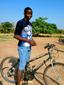 Numbo is a student who travels about 1.5 km to get to school in Dupari. Thanks to your donation, Numbo received a bicycle and learned how to take care of it! He will share the bicycle with his brothers and sisters because they helped him buy the bicycle. He is very excited about his new bicycle and says, “The bicycle makes me do everything FAST!” Now Numbo can travel faster to and from school, and avoid arriving late. Owning a bike gives him more time to study, will increase his attendance at school, and gives him time to help on the family farm. Life with a bicycle will be much easier!